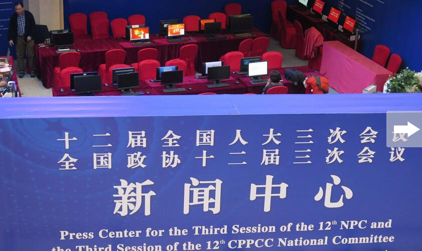 2015年2月26日,北京,位于梅地亚中心的2015全国两会新闻中心准备就绪,27日正式对记者开放。第十二届全国人民代表大会第三次会议和政协第十二届全国委员会第三次会议,将分别于2015年3月5日和3月3日在北京开幕。为方便记者采访,两个会议新闻中心网页将及时发布采访信息及与采访相关的资讯。