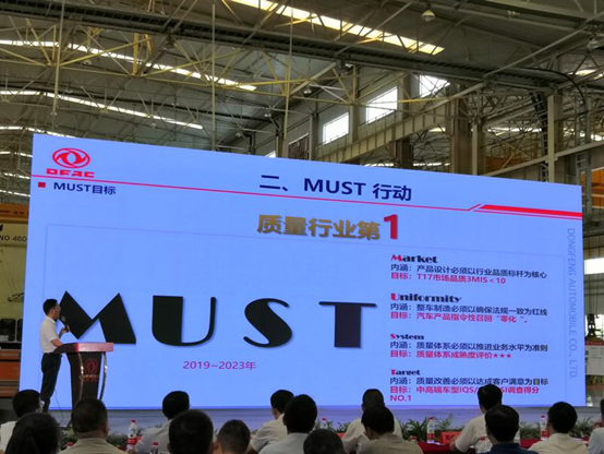 面向未来,如何在2023年实现LCV(轻型商用车)年销量30万台、质量行业第一的“163倍增计划”,东风汽车股份经营班子认识到打造固化的、可持续的、面向客户的质量管理体系,成为迈向“163”的重要支撑,而“MUST”行动成为当前及未来经营工作的一个质量战略重点,成为打造质量体系力的一个重要载体。
