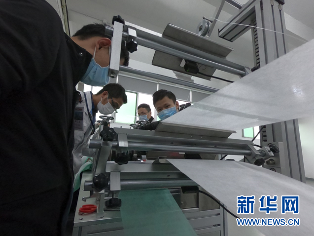 广汽第一台口罩生产设备顺利安装并进行调试。新华网发