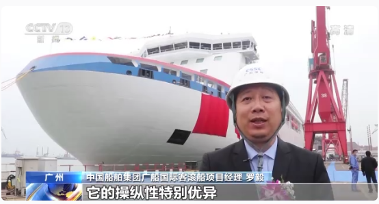 中国船舶集团广船国际客滚船项目经理 罗毅:它的操控性特别优异,能够在550米的海域内自由地掉头。它的舒适性极佳,全船的噪音振动水平达到了国际领先水平。它配备了国内自主设计的一体化智能系统,能够使旅客通过一卡通、一码通享受便捷的酒店(式)服务。