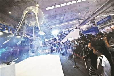 水母、蜻蜓的运动轨迹被完全模拟——研发公司费斯托有限公司北区销售总监闫瑜介绍,仿生机器人的研发目的不仅是将动物界的高效、轻耗能引入到工业领域,也为智能制造打下技术基础。
