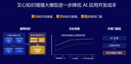 深度学习平台加上大模型,可以贯通从硬件适配、模型训练、推理部署,到场景应用的AI全产业链。依托飞桨,文心知识增强大模型进一步降低了AI应用开发成本,快速赋能工业、能源、城市、金融等千行百业,助力AI工业大生产的全速前进。比如,AI能助力电力场景问题定位准确率达99%,金融领域授信报告识别准确率达99%,汽车领域对话意图理解准确率达96%等等,真正实现显著增效。