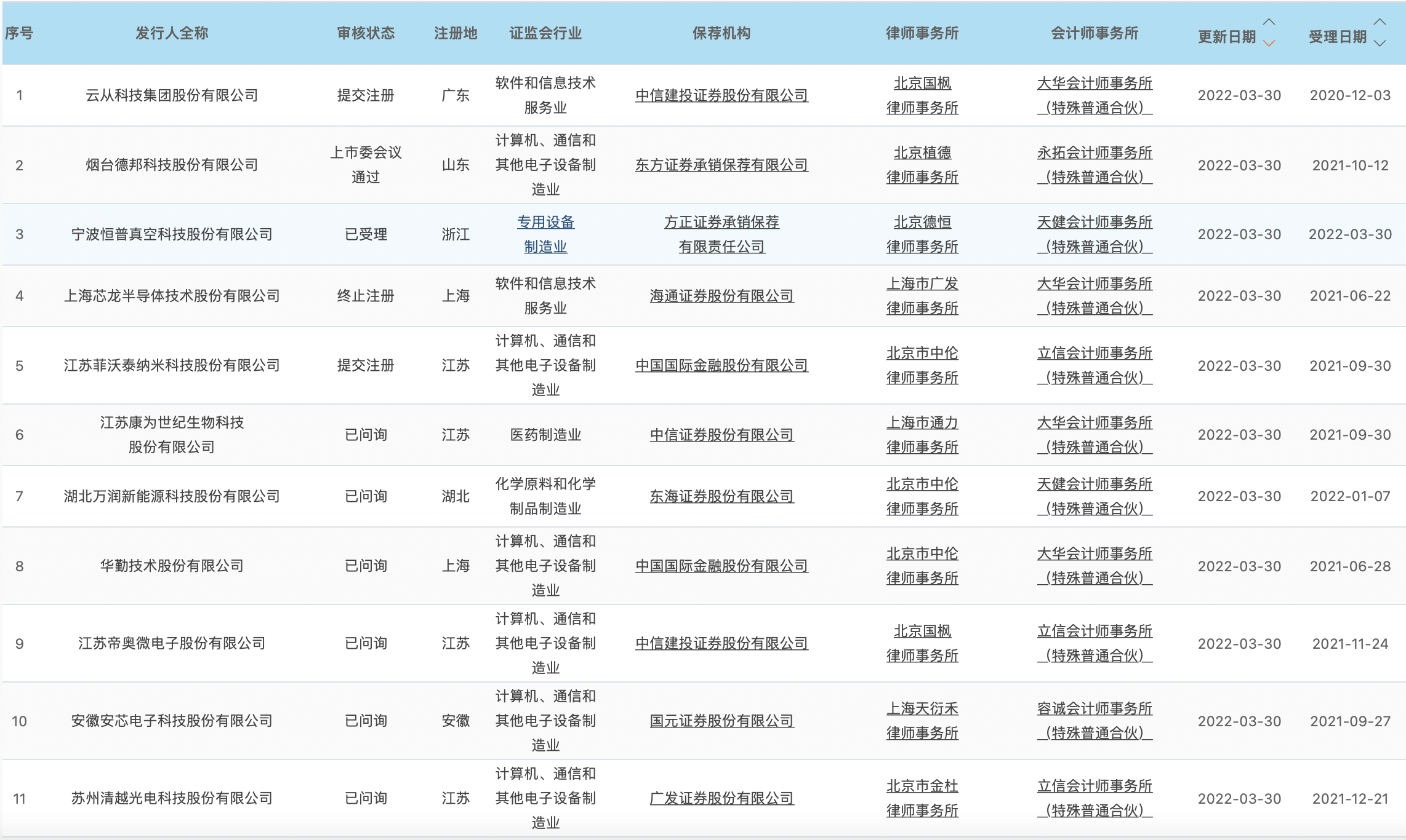 截至2022年03月30日晚,共有717家公司科创板上市申请获受理,11家公司发审状态更新。