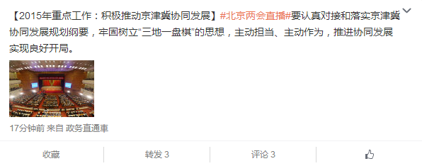 北京两会:2015年重点推动京津冀协同发展