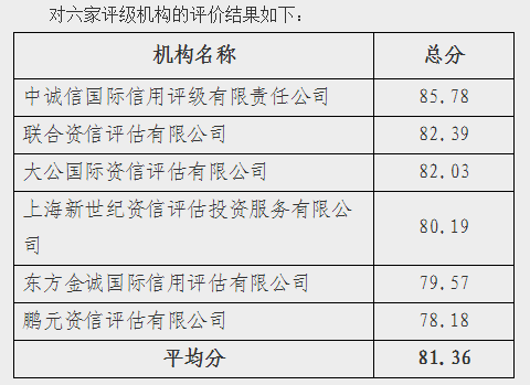 六家企业债券信用评级机构信用评价结果公布