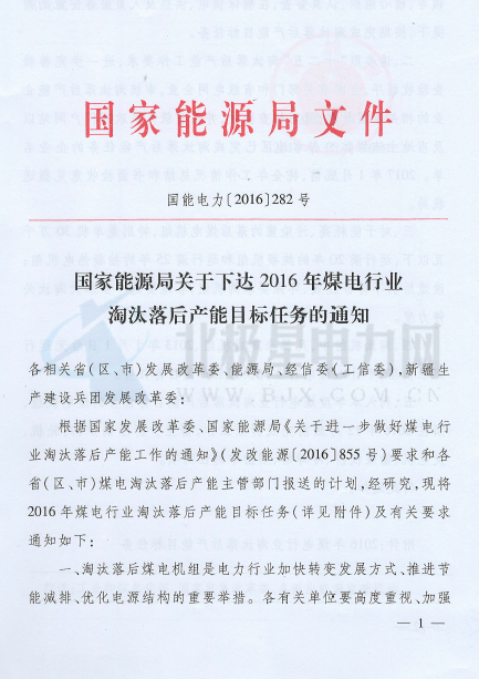中国证券网讯 据北极星电力网11月3日报道,近日国家能源局下达《关于2016年煤电行业淘汰落后产能目标任务的通知》,《通知》要求要进一步加大对于能耗高、污染重的落后煤电机组,特别是单机30万千瓦以下,运行满20年的纯凝机组和运行满25年的抽凝热电机组以及改造后仍不符合能效、环保要求的机组的淘汰关停力度。淘汰机组中,凡属未建成机组、2013年1月1日后无运行记录机组,不计入煤电行业淘汰落后产能目标任务。