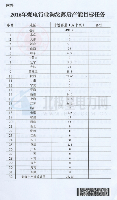 能源局:2016年煤电行业计划淘汰落后产能491.8万千瓦