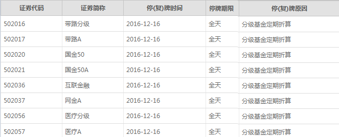 16日两市共42只分级基金产品因定期折算停牌