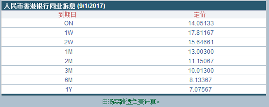 离岸人民币Hibor9日回落 流动性紧张缓解