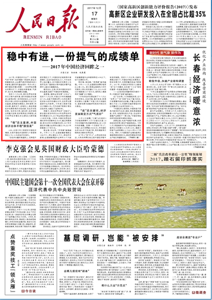 人民日报本周连发四文评析回眸2017年中国经济