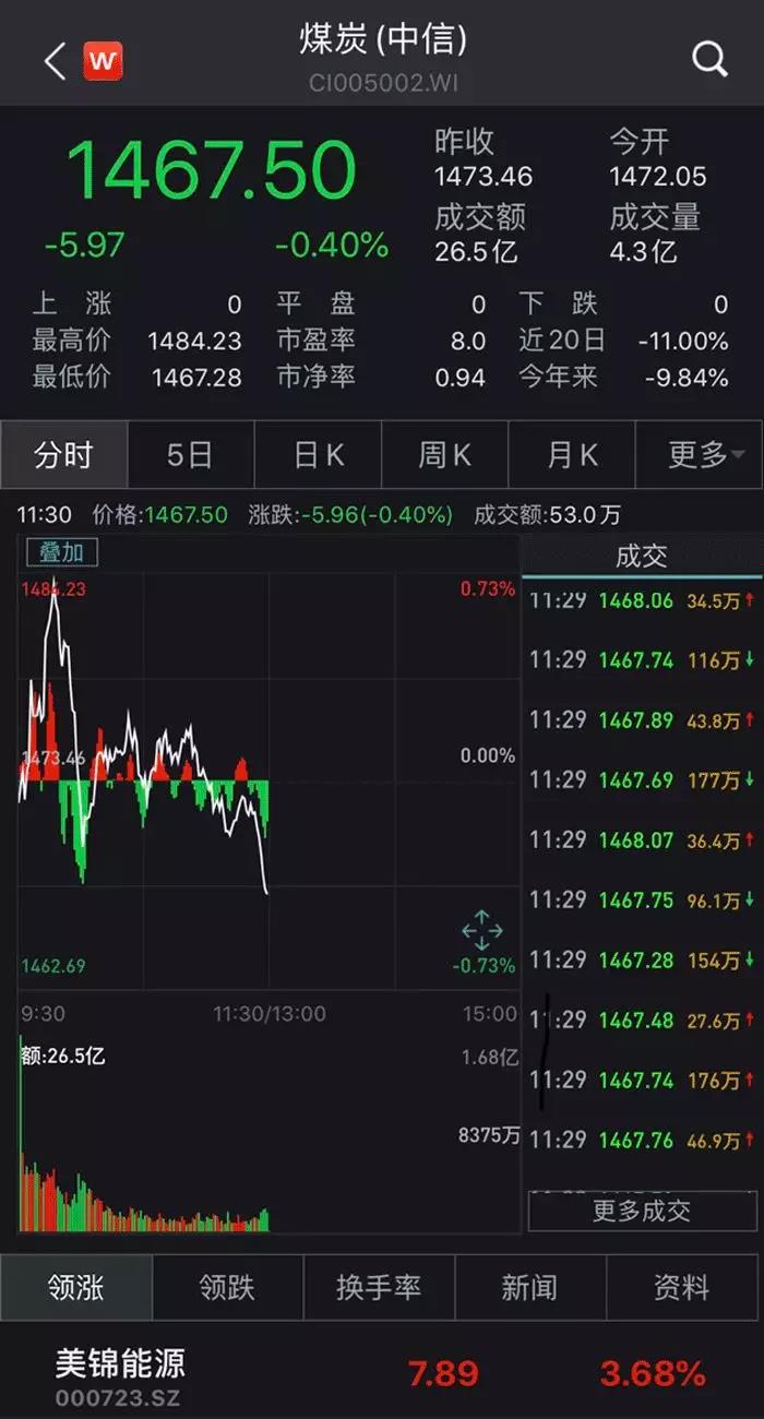 2月13日早盘,煤炭板块指数一度飘红。截至午间收盘,煤炭(中信)指数小幅下跌0.40%,美锦能源、山煤国际小幅上涨。