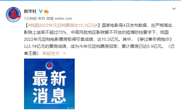 我国2022年元旦档票房达10.2亿元