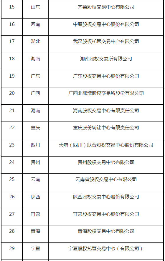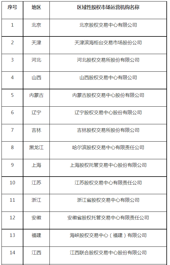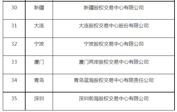 证监会公示全国区域性股权市场运营机构备案名单