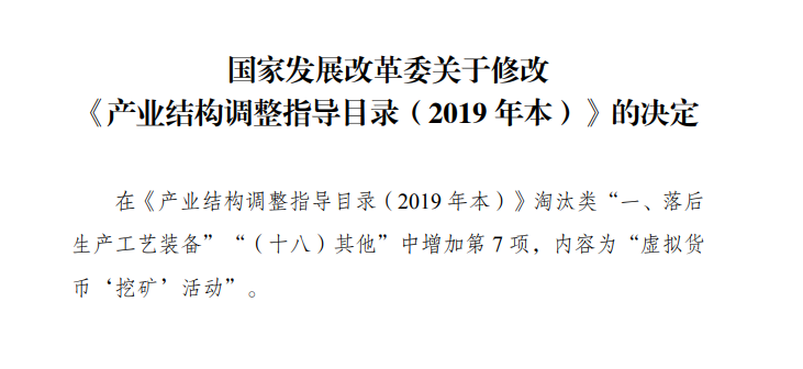 上证报中国证券网讯 据国家发展改革委1月10日消息,《国家发展改革委关于修改<产业结构调整指导目录(2019年本)>的决定》已经2021年12月27日第20次委务会议审议通过。在《产业结构调整指导目录(2019年本)》淘汰类“一、落后生产工艺装备”“(十八)其他”中增加第7项,内容为“虚拟货币‘挖矿’活动”。