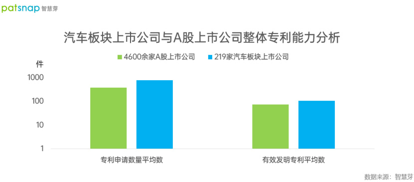 从专利申请数来看,A股4600多家公司平均约377件,A股汽车公司平均约776件;从有效发明专利量来看,A股4600多家公司平均约74件,A股汽车公司平均约107件。智慧芽报告称,无论是从专利能力还是专利质量来看,A股汽车公司都领先A股整体公司。