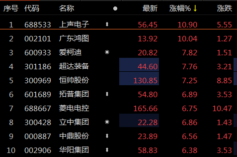 上证报中国证券网讯 1月14日早盘,汽车零部件板块走高,截至10:20,上声电子涨超10%,广东鸿图涨停,爱柯迪、超达装备等涨幅较大。