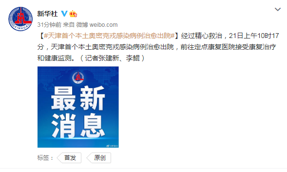 天津首个本土奥密克戎感染病例治愈出院