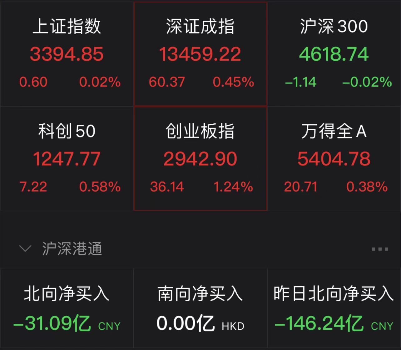 三大股指探底回升集体翻红 创业板指涨逾1%