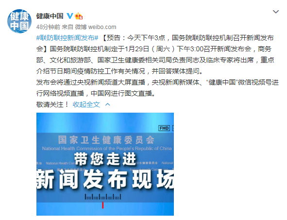 预告:国务院联防联控机制召开新闻发布会介绍节日期间疫情防控工作有关情况