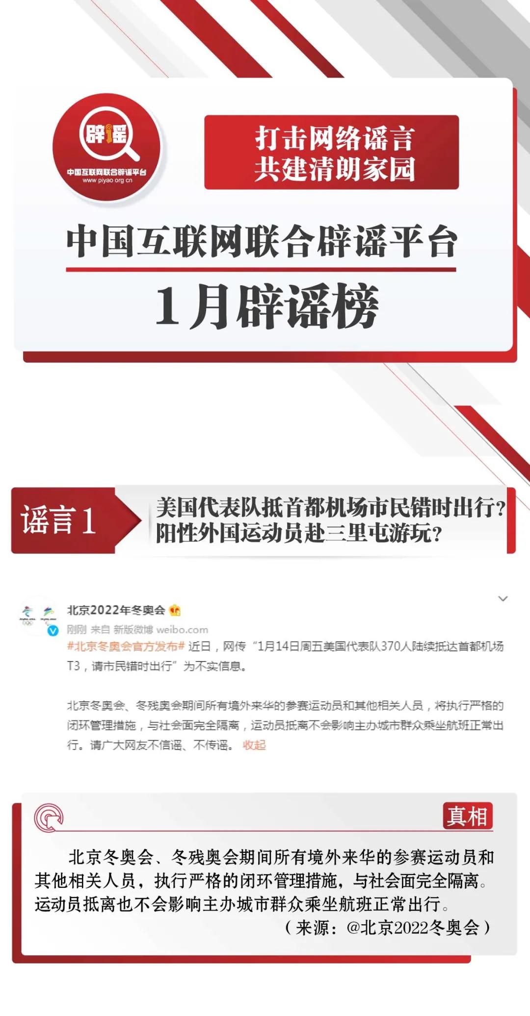 打击网络谣言 共建清朗家园 中国互联网联合辟谣平台1月辟谣榜