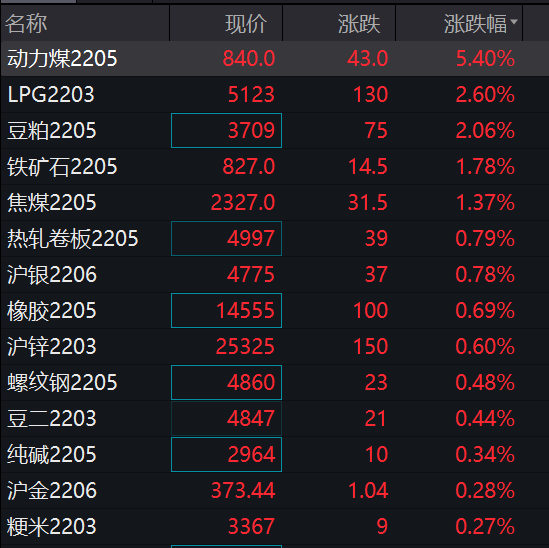 上证报中国证券网讯 2月7日国内期市夜盘交易时段,动力煤期货表现出色。北京时间21时04分,动力煤主力合约上涨5.4%。LPG及豆粕主力合约的涨幅超过2%。