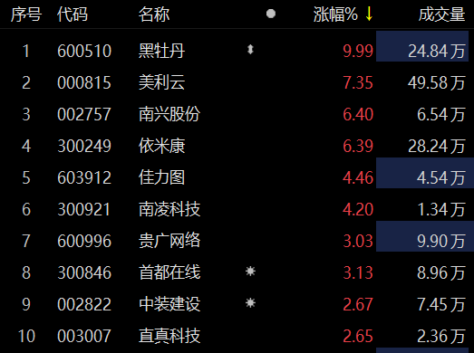上证报中国证券网讯 3月8日,东数西算概念股反弹拉升,截至9:35,黑牡丹两连板,美利云、南兴股份、依米康、佳力图等涨幅居前。
