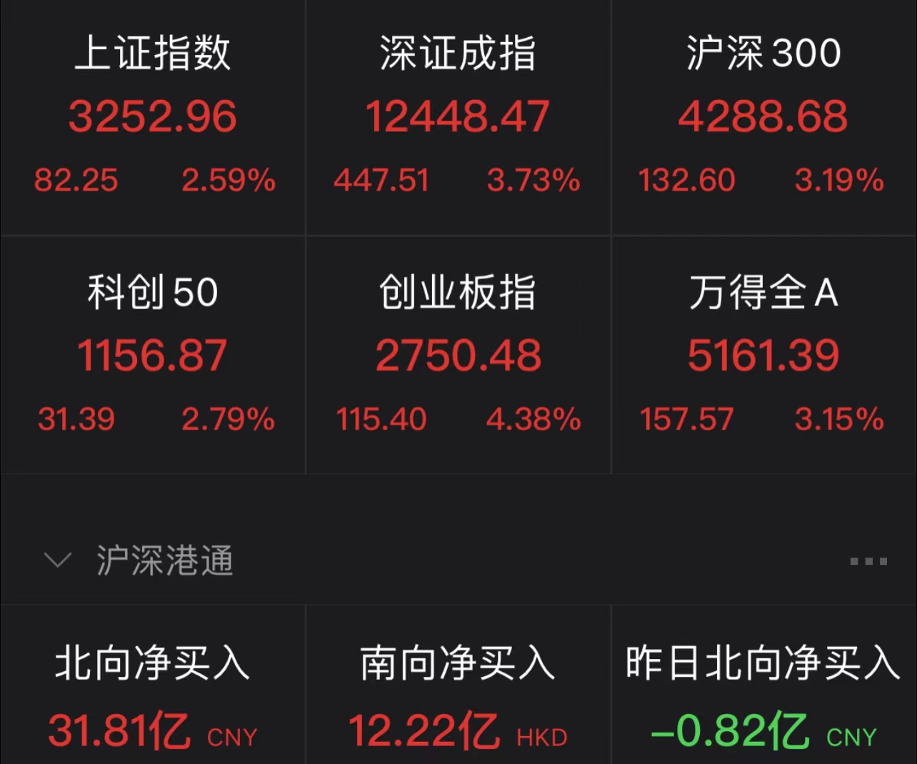 创业板指涨近4.4% 行业板块全线飘红 北向资金净流入超31亿元