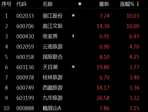 旅游板块走高 曲江文旅、丽江股份涨停