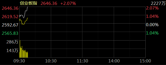创业板指盘中涨逾2% 锂电池板块冲高 农业板块表现较弱