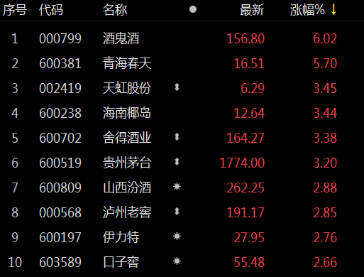 白酒股震荡上行 贵州茅台涨超3%
