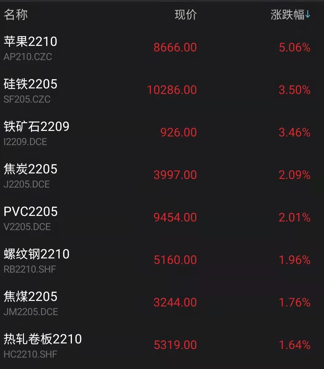 国内商品期货涨跌不一 苹果主力期货涨超5%