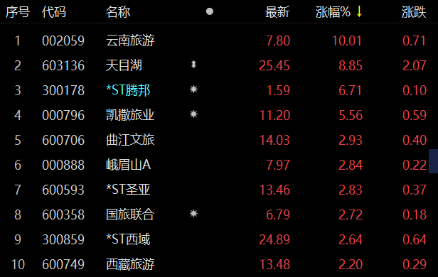 旅游板块表现强势 云南旅游涨停