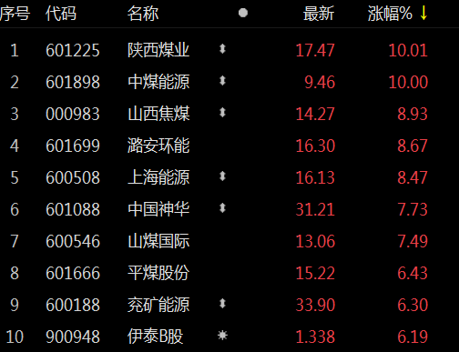 煤炭板块走强 陕西煤业、中煤能源涨停
