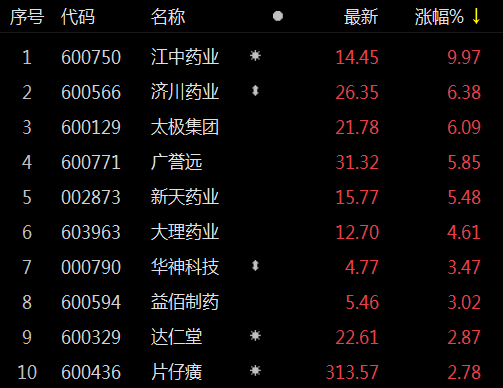 中药板块拉升 江中药业涨停