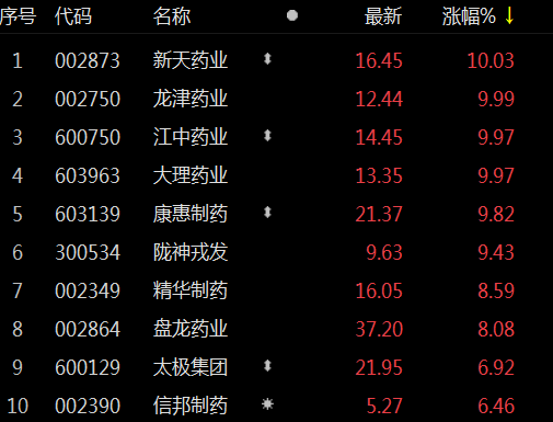 中药板块表现活跃 龙津药业等多股涨停