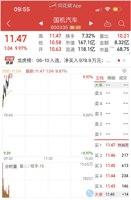 国机汽车涨停 实现4连板