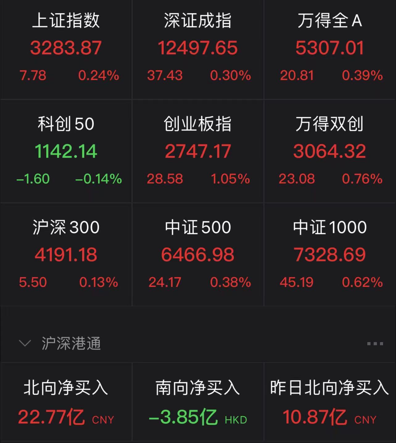 上证报中国证券网讯 8月16日,A股三大股指早盘全线飘红。截至午间收盘,上证指数涨0.24%,深证成指涨0.3%,创业板指涨1.05%。
