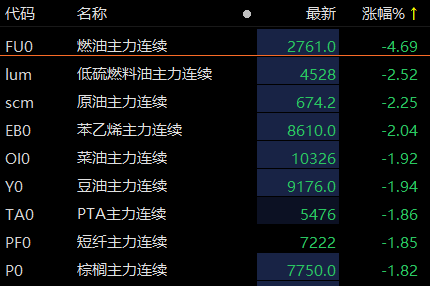 国内能源期货开盘显著下跌 燃油主力合约下跌超4%