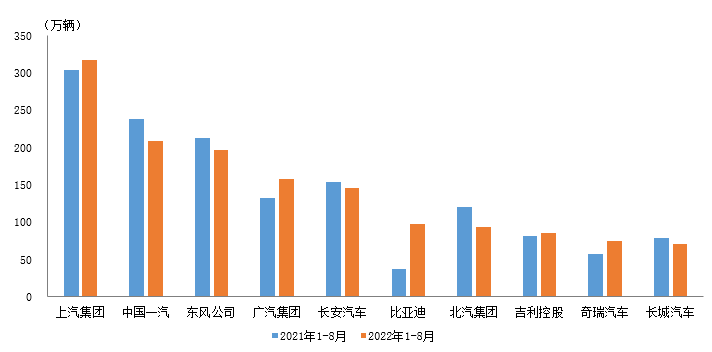 上证报中国证券网讯 据中国汽车工业协会统计分析,2022年1-8月,汽车销量排名前十位的企业(集团)共销售1453.9万辆,占汽车销售总量的86.2%。