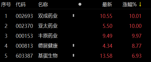 医药生物板块表现活跃 双成药业7天6板