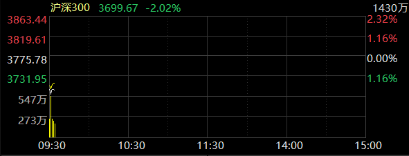 上证报中国证券网讯 截至11月28日9:34,沪深300指数失守3700点,日内跌幅超2%。