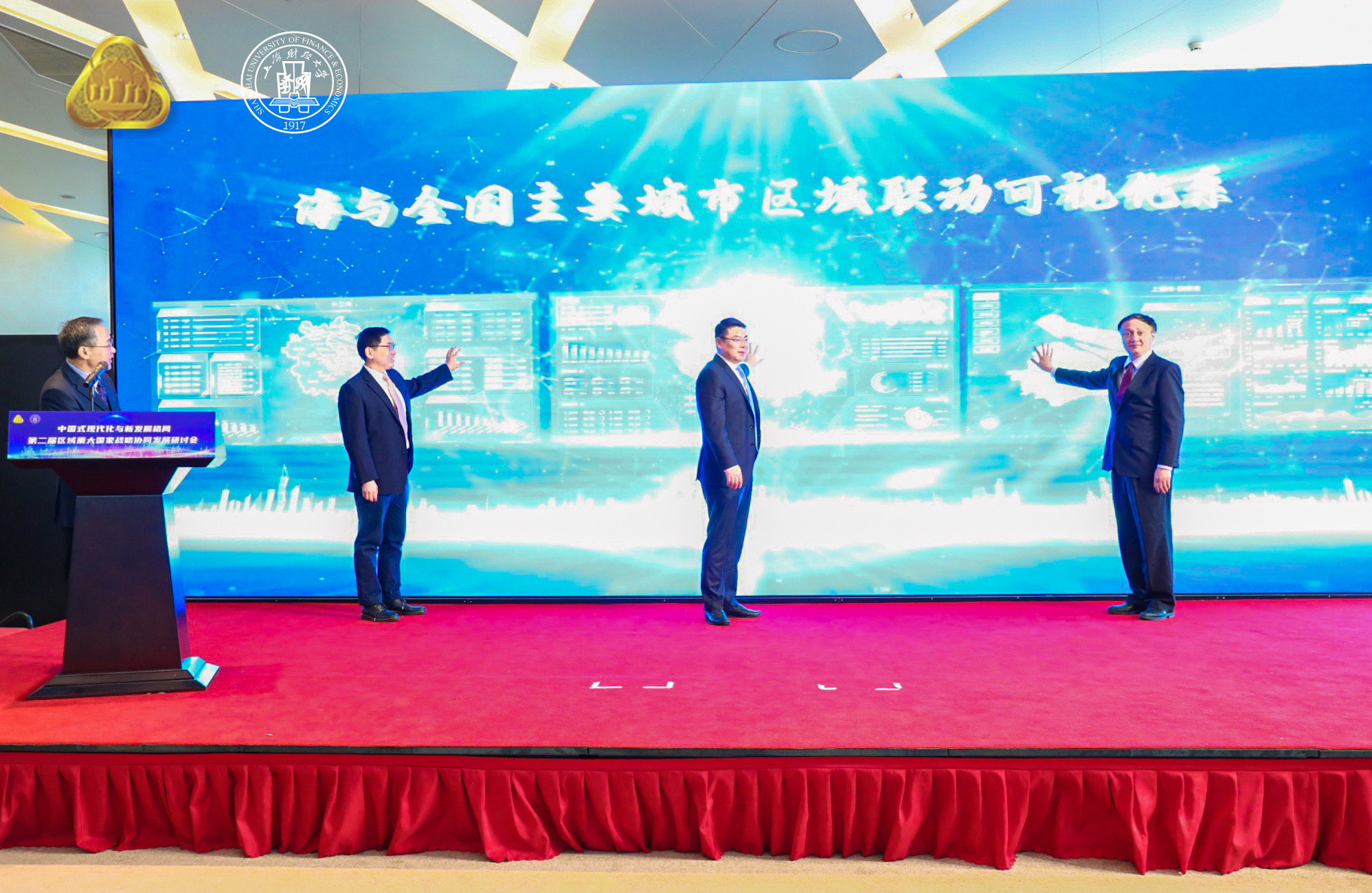 会上,上海市人民政府合作交流办公室党组书记、主任潘晓岗,上海财经大学党委书记、长三角与长江经济带发展研究院院长许涛,上海市大数据中心党委副书记赵睿共同发布了“上海与全国主要城市区域联动”可视化系统和联动指数研究成果。