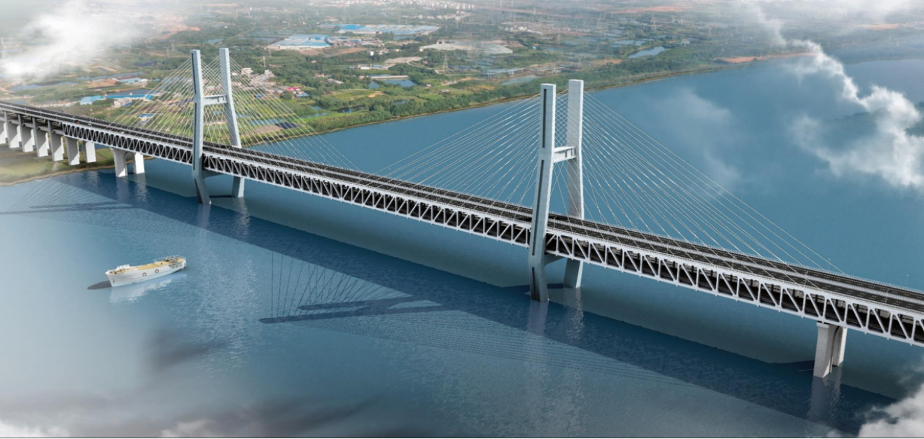 崇启公铁长江大桥主桥为上海至南京至合肥高铁控制性节点工程。其构造为双层布置的公铁两用桥,上层是双向6车道、时速100km的一级公路;下层是时速350km的双线高速铁路+时速250km的双线城际铁路。大桥分为主通航孔桥、非通航孔桥、南北岸公铁合建引桥、南北岸单建铁路引桥;其中主通航孔桥为主跨400米双塔双索面钢桁结合梁斜拉桥,是世界最大跨度双塔双索面公铁两用无砟轨道斜拉桥。