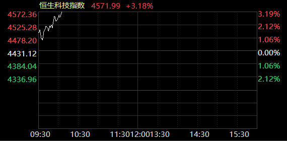 恒生科技指数涨幅扩大至3%