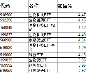 从市场表现来看,券商板块、医药、数据安全板块涨幅领先,其中,生物科技ETF、科技ETF、龙头券商ETF、人工智能ETF、半导体ETF等涨幅均超过3%。