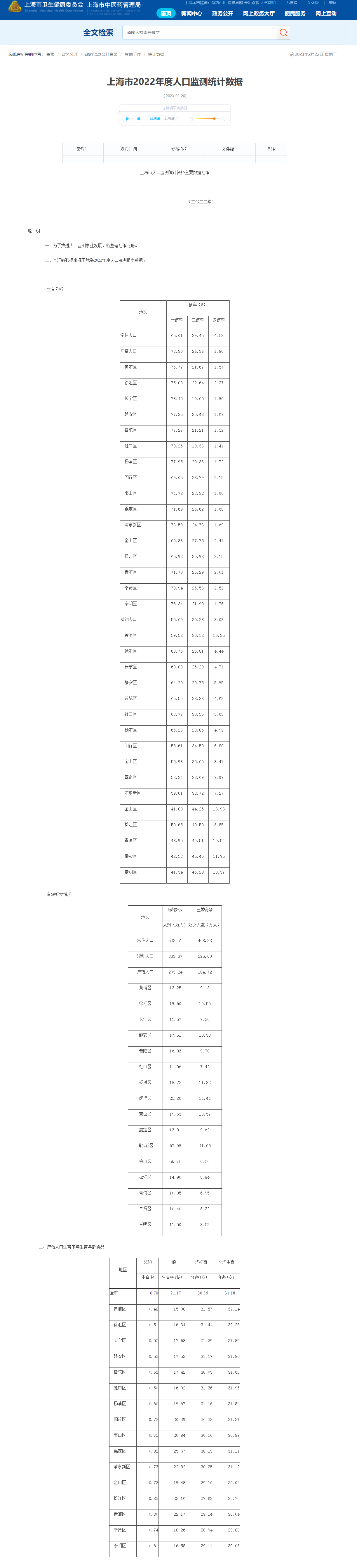上证报中国证券网讯 据上海市卫生健康委员会消息,上海市卫健委发布《上海市2022年度人口监测统计数据》,数据显示,上海全市总和生育率为0.7,平均初育年龄为30.36岁,平均生育年龄为31.18岁。