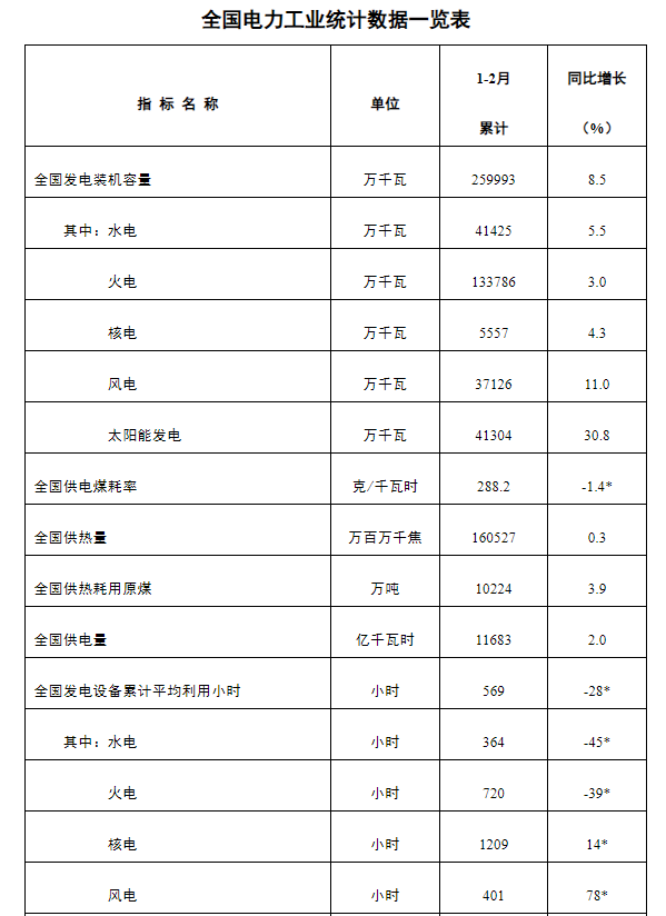 上证报中国证券网讯 3月21日,国家能源局发布1-2月份全国电力工业统计数据。