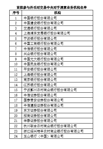 上海清算所推出外币对交易中央对手清算业务 首批参与机构共计24家