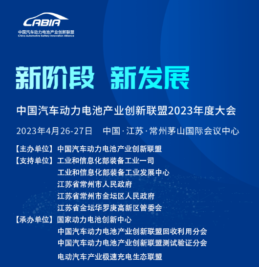 中国汽车动力电池产业创新联盟2023年度大会将于4月26日至27日举办