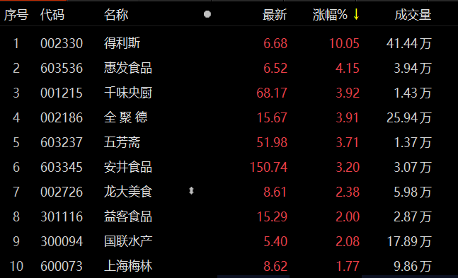 预制菜板块异动拉升 得利斯涨停